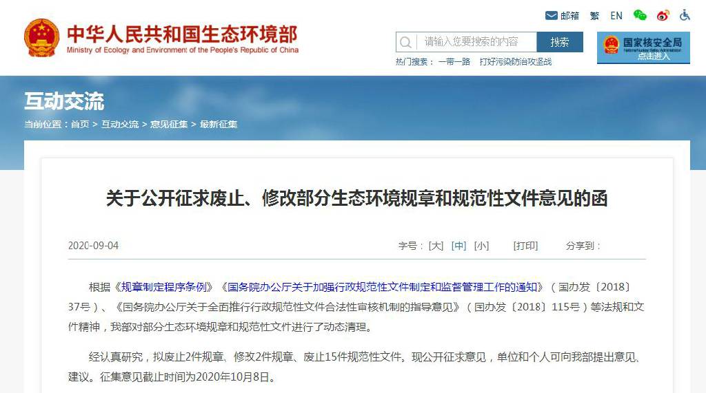 经认真研究,拟废止2件规章、修改2件规章、废止15件规范性文件。现公开征求意见,单位和个人可向我部提出意见、建议。征集意见截止时间为2020年10月8日。